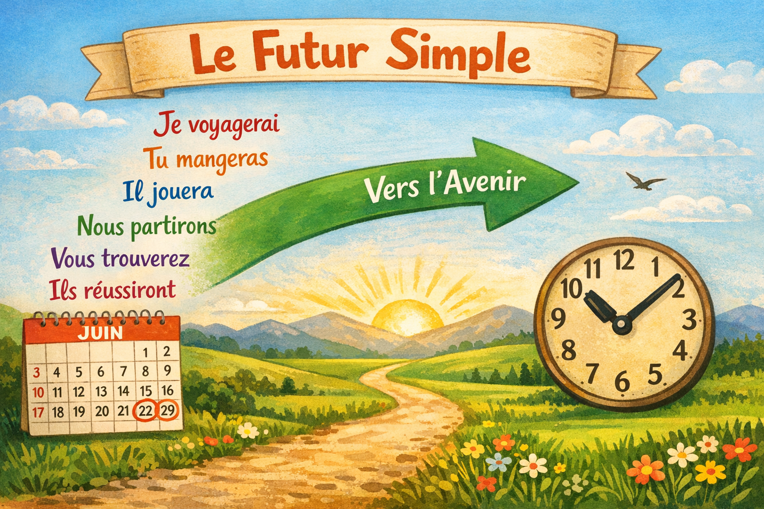 Le futur simple de l'indicatif : formation, terminaisons et verbes irreguliers